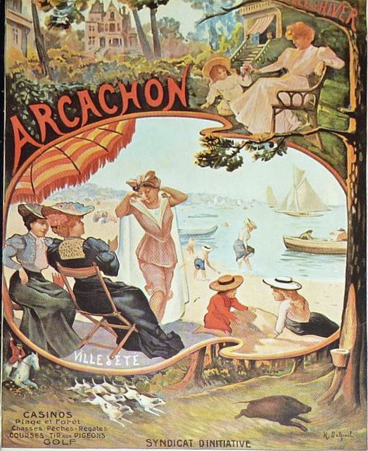 When a new train line from Bordeaux to Arcachon opened in 1855, wealthy Parisians packed their suitcases full of summer clothes, took their hats and parasols and made their way to the coast. Not only was the Arcachon Basin a beautiful stretch of soft, white sand, perfect for dabbling your toes, but a month or so in the invigorating sea air did wonders for ones’ health. It was not long before the small town of Arcachon became a well known station balnéaire, or bathing resort.
