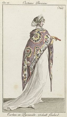 The neo-classical look is just as it sounds; a homage to the classical past. As the French floundered for an identity, they looked to the empires of Greece and Rome for inspiration. The Grecian tunic was a very popular style, with swathes of white lawn or cotton fabric draping the body. What was underneath these gowns varied, though if you were truly marvellous there would be as little underwear as possible.