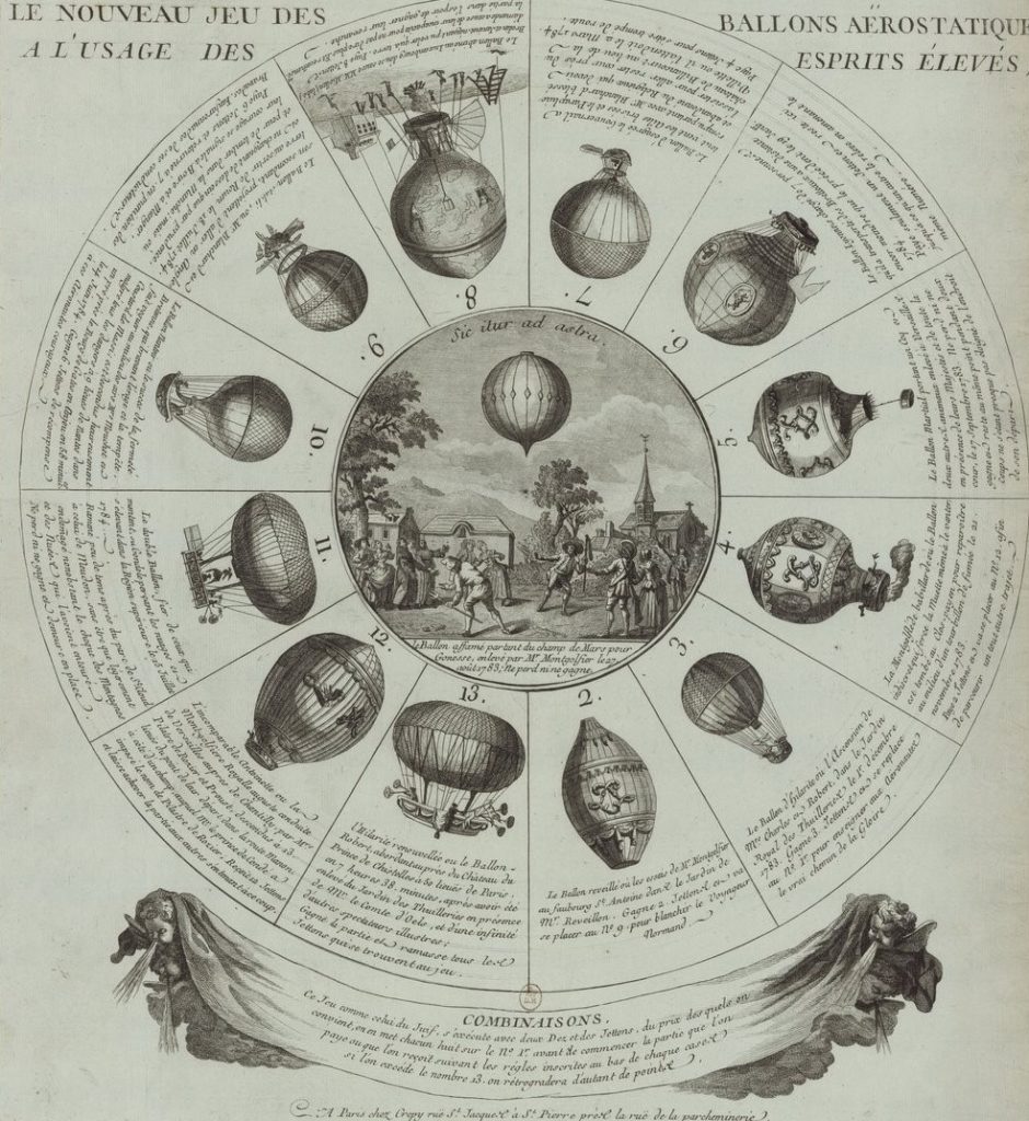 Gorgeously decorated balloons sparked new fashion trends all over Europe and inspired new fads and products. Hair and clothing styles, jewelry, snuffboxes, wallpaper, chandeliers, bird cages, fans, clocks, chairs, armoires, hats, and other items, were designed with balloon motifs.