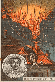 You would think a combination of fireworks and the highly flammable hydrogen gas filling the hot air balloon is perhaps quite dangerous. For the first nineteen times Sophie performed her new act she did so to perfection; the distance between the feux de bengale underneath the basket and the opening of the balloon was large enough to prevent any fire. And the twentieth time? Read on.