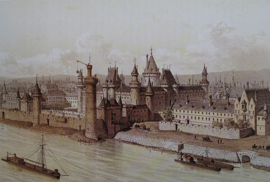 So-called due its many petites tournelles, or small towers, the Hôtel des Tournelles in Paris owed its existence to the English. Towards the end of the long Hundred Years War, in 1420, the English had pillaged their way along the Seine and had taken Paris. The Duke of Bedford settled himself in the Hôtel des Tournelles in the Marais district, next to the Bastille. At that time the palace was only a ‘small’ house, first built in 1390. When the Duke finally left 16 years later, he had expanded and embellished and even added a gallery with painted green courgettes on the walls. The royals liked what he’d done to the place so much that they moved themselves in.